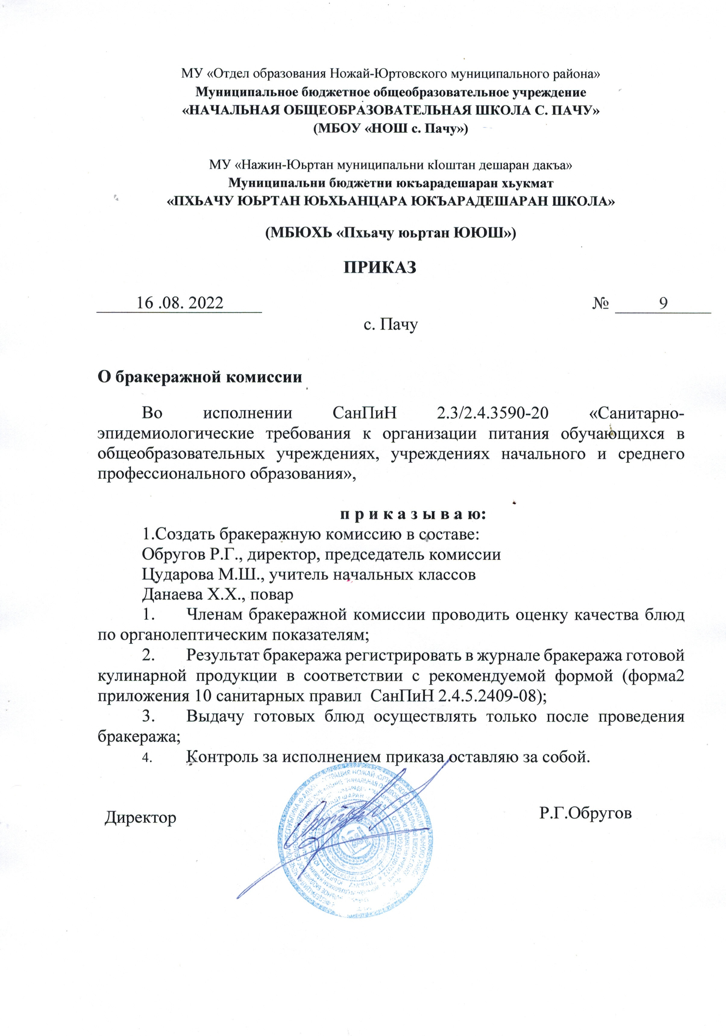 Приказ о создании бракеражной комиссииДокументы